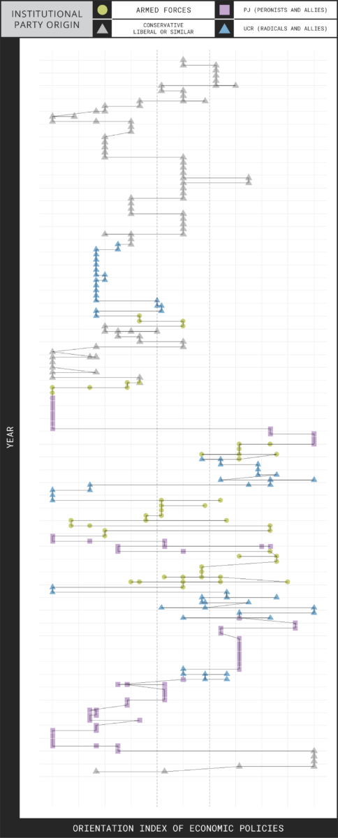To capture this dimension, the paper develops a novel index of economic policy orientation, tracing shifts between more interventionist and more liberal stances across fiscal, monetary, exchange-rate, trade, capital-account, regulatory, and privatisation policies. Built from a historical meta-narrative spanning 140 years and more than a hundred pages of documented public actions, the index allows policy changes to be analysed alongside movements in real wages, the real exchange rate, and output.